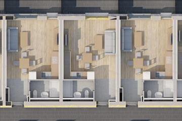 számára. Az épületben 81 darab 27 m2 és 86 m2 közötti alapterületű,