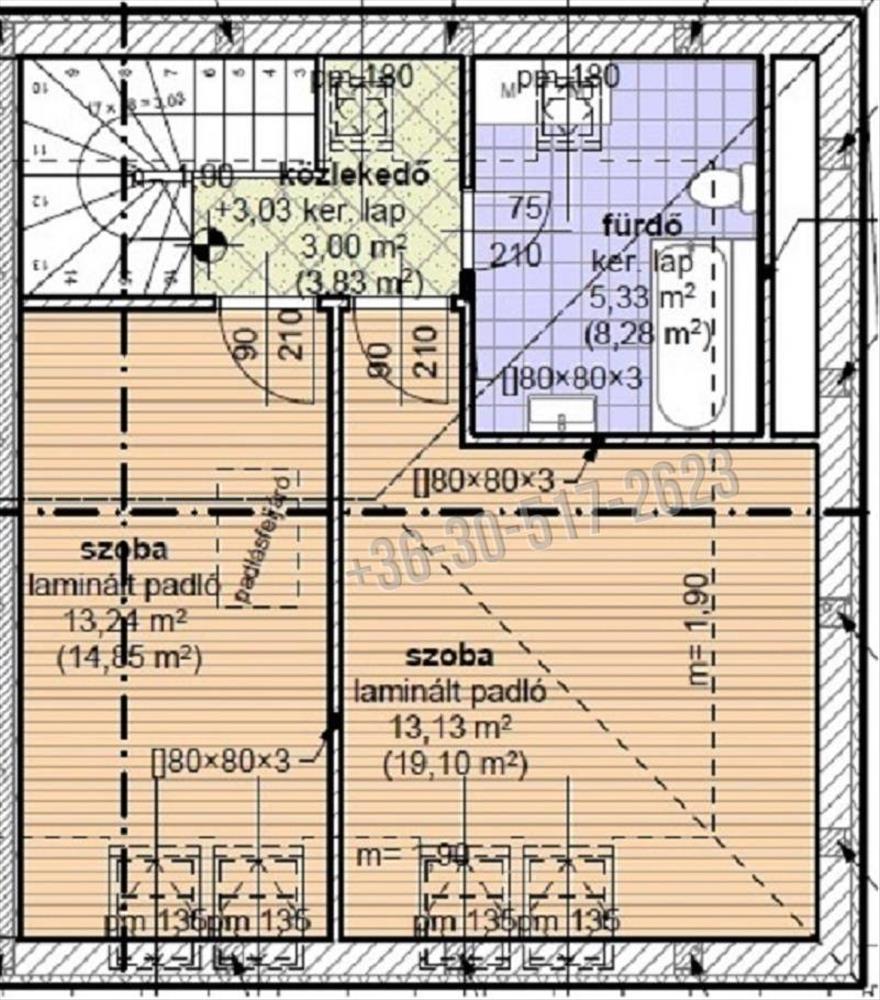 A lépcsőházon át a tetőtérbe érve két tágas hálószoba és egy kényelmes méretű fürdőszoba lesz kialakítva.