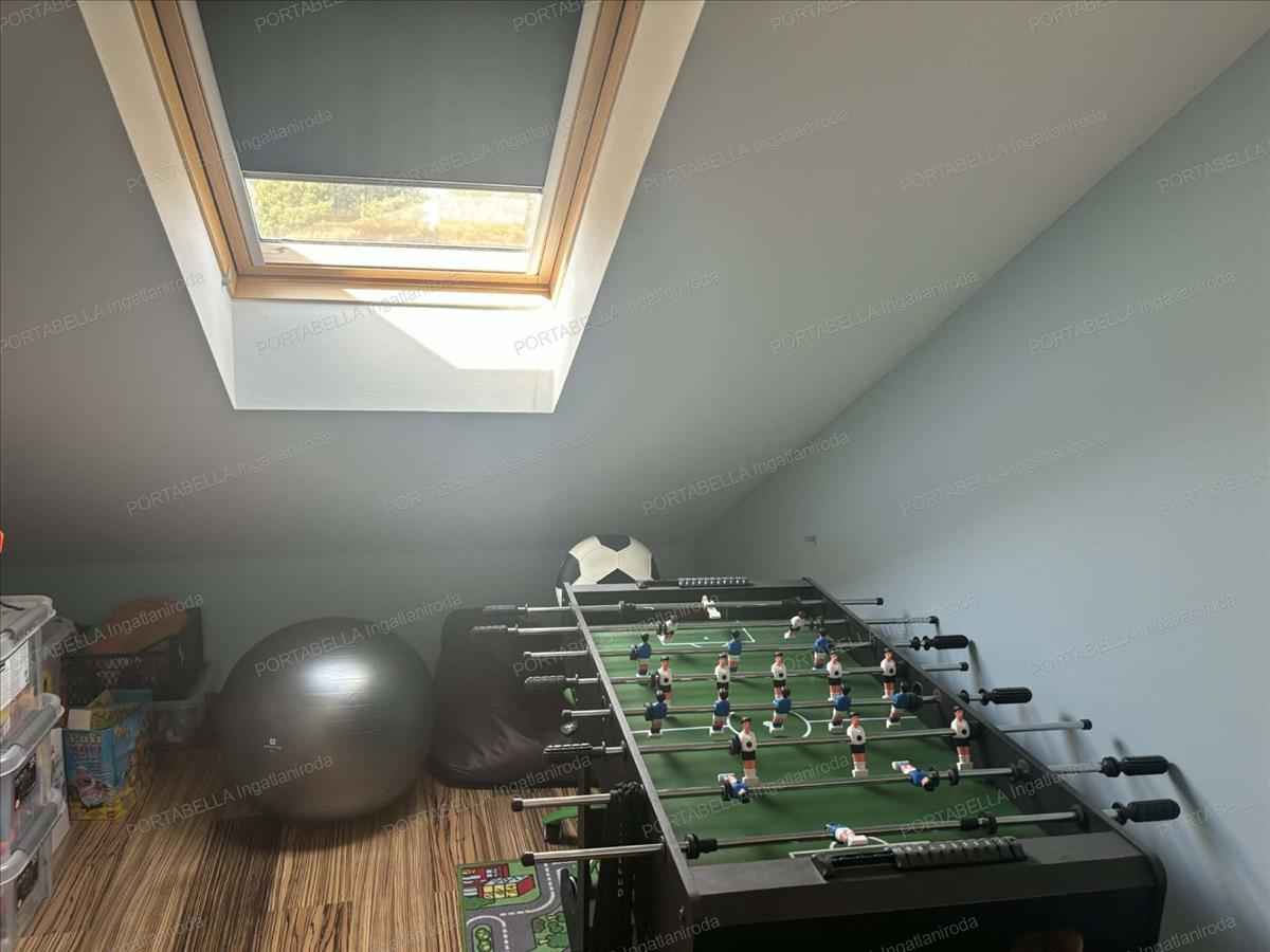 Az ingatlanhoz tartozik egy 13 m²-es garázs, amely külön helyrajzi számmal rendelkezik, és Hörmann kapuval, távirányítós nyitással felszerelt.