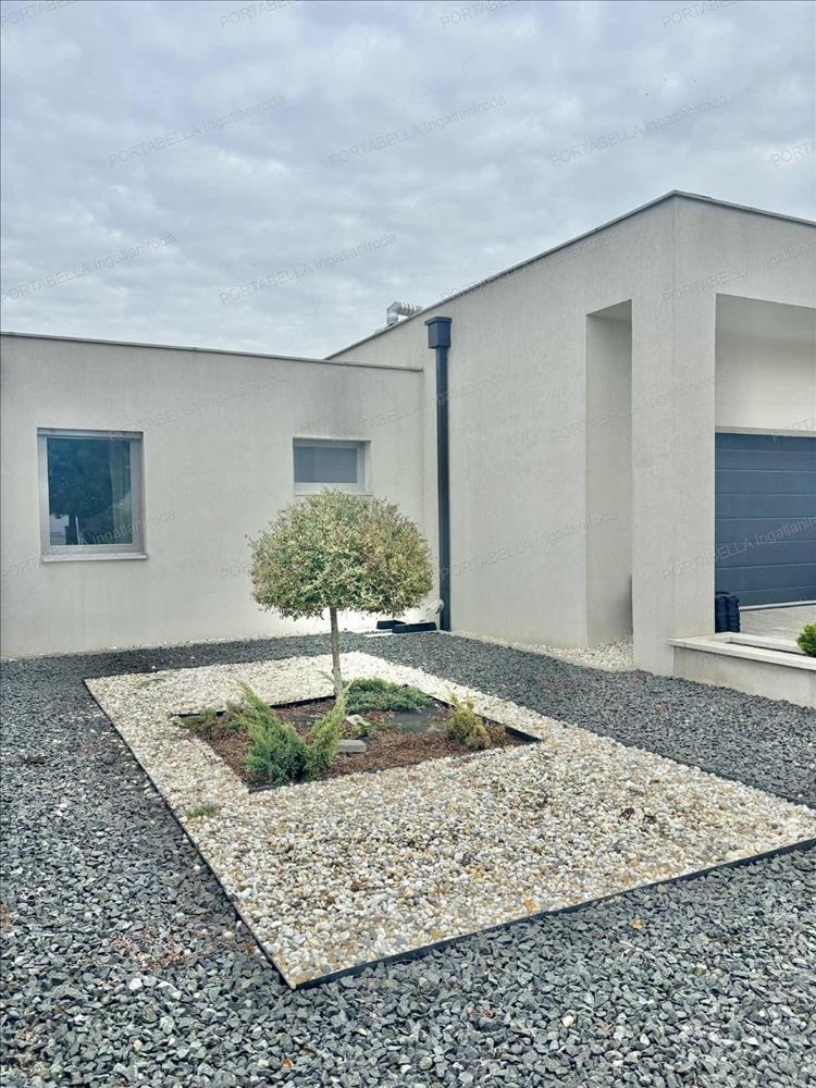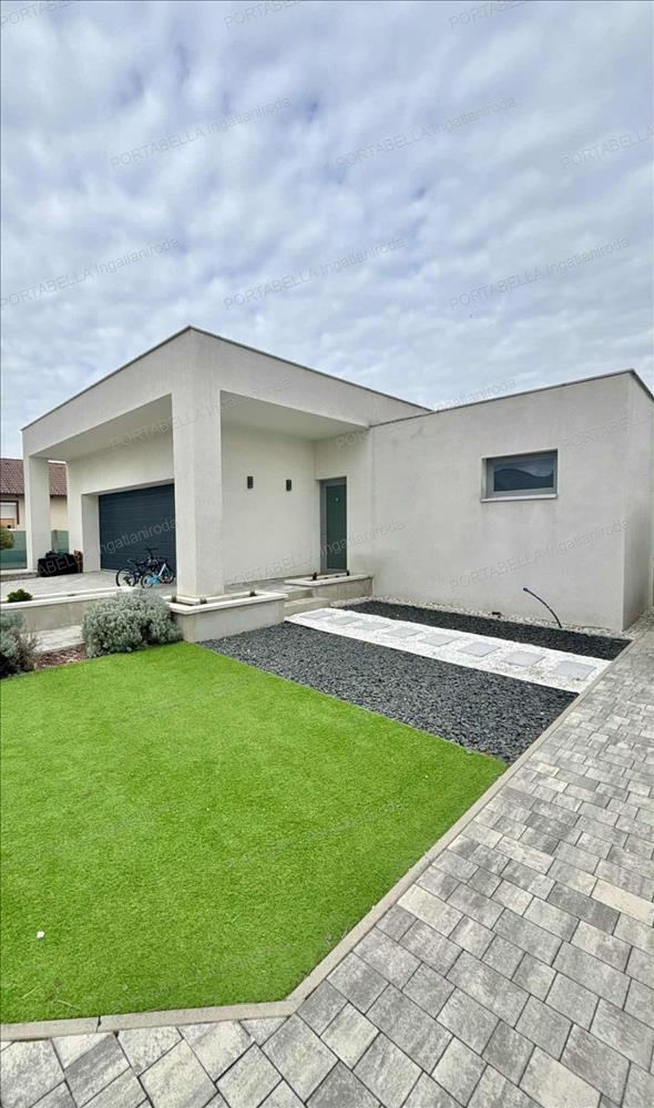 • Teljesen térkövezett bejáró, modern lapostetős megjelenés