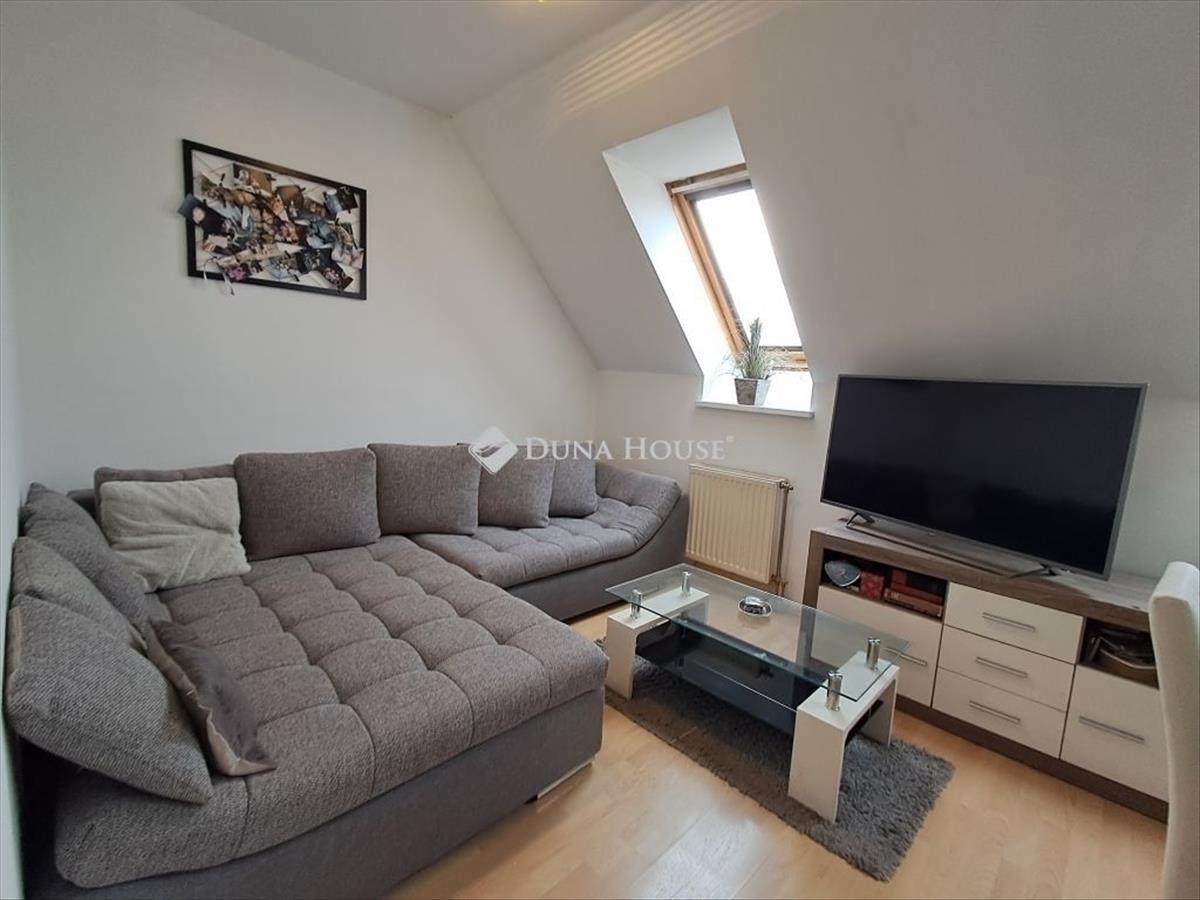 Eladó Pécs belvárosában a Móricz Zsigmond téren egy jó állapotú, 65 m2-es, belső kétszintes, gázcirkó fűtésű, két hálós tetőtéri téglalakás.