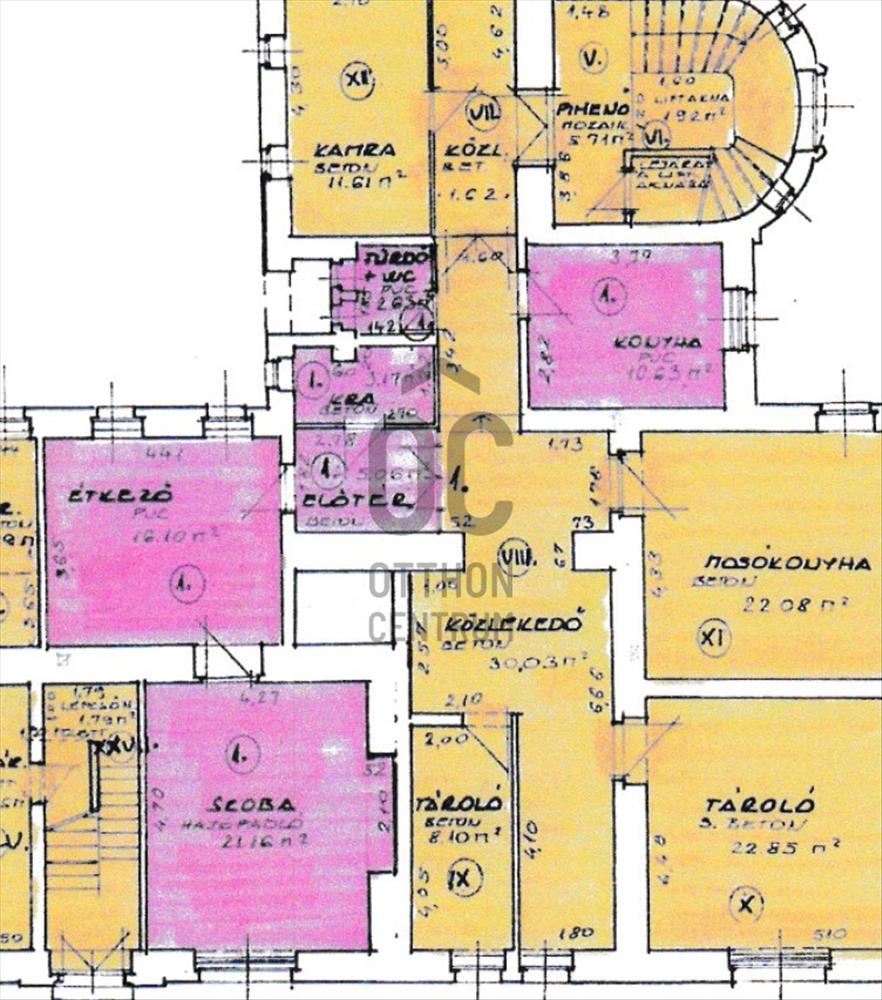 Átalakítással egy nagy konyha+étkező+ nappali alakítható ki egy szobával, és fürdőszobával.