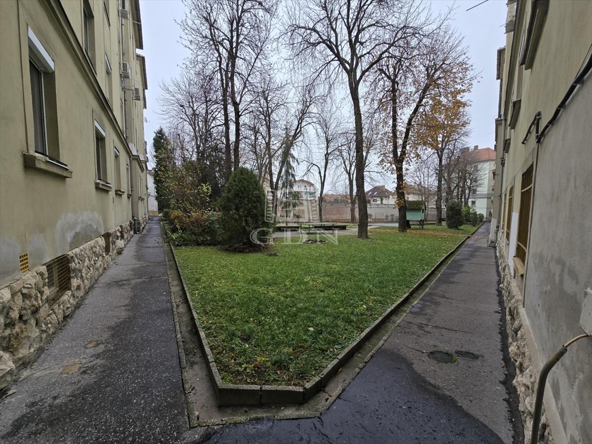 A lakás egy az 1950-es évek elején épült, rendezett, 12 lakásos társasházban található, csendes lakóközösséggel és tiszta, karbantartott lépcsőházzal. a társasház külön előnye, hogy két bejárattal rendelkezik: az egyik utcai, míg a másik egy parkosított belső udvarra nyílik, ahonnan közvetlenül elérhetők a garázsok is.