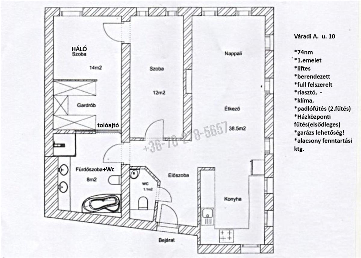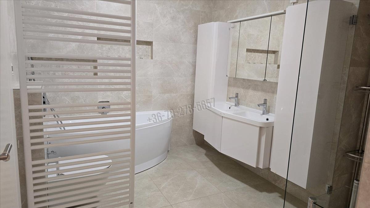 A helyiségek: előszoba, tágas amerikai konyhás nappali, két különnyíló háló, dupla wc, fürdőszoba káddal és tusolóval, elektromos padlófűtés. Kiemelt extrák: elektromos redőnyök, riasztó, programozható klíma, prémium nyílászárók és burkolatok. a társasház részlegesen akadálymentesített, a megvásárolható beálló amely lifttel is elérhető, tömegközlekedés kiváló, az ingatlan azonnal birtokba vehető és otthon start programra is alkalmas.