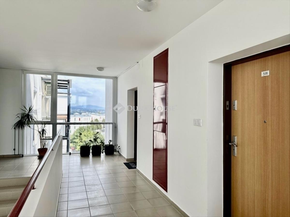 Eladó panorámás, modern lakás tetőterasszal Fellbach lakópark, PécsExkluzív lehetőség a közkedvelt Fellbach lakóparkban: eladásra kínálunk egy kiváló elrendezésű, világos, modern kialakítású téglalakást, páratlan kilátással a Mecsekre. Az ingatlan egy lifttel ellátott társasház legfelső szintjén található, igényes, rendezett környezetben. Főbb jellemzők:Tágas amerikai konyhás nappaliNagyméretű tetőterasz elektromos árnyékolóvalKét külön nyíló hálószobaFürdőszoba + külön WCMinden helyiség klimatizáltSaját, zárható tárolóTávfűtés egyedi mérővelParkolás közvetlenül az épület előtt, mindkét irányból megközelíthetőenA lakás modern burkolatokkal, stílusos belsőépítészeti megoldásokkal, kiváló természetes fényviszonyokkal rendelkezik. Ideális választás azok számára, akik igényes, jól megközelíthető, nyugodt környezetben keresnek prémium ingatlant. További információért és megtekintésért keressen bizalommal!