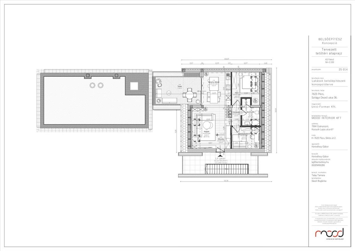 Az itt kínált ingatlan a társasház tetőterében található, egy nagy méretű terasszal kiegészítve.