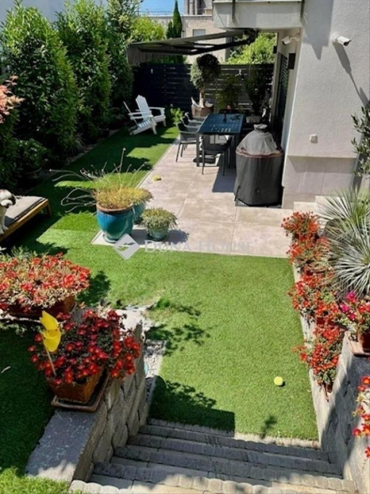 A téglaépítésű ingatlan modern, magas minőségű anyagokkal készült, így a dizájn és a tartósság minden igényt kielégít. a lakáshoz terasz és kertkapcsolat is tartozik, ahol reggelente a madárcsicsergésre ébredhet, vagy estefelé csodálhatja a környező kertek látványát.