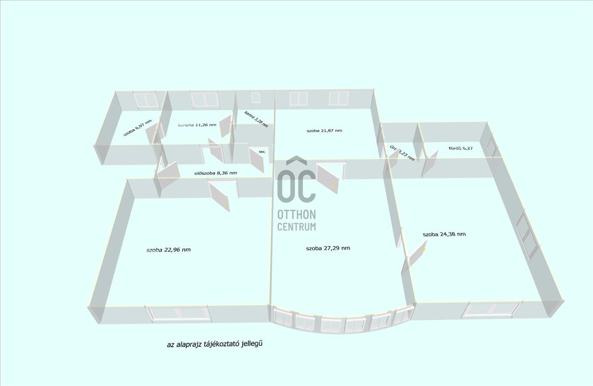 Helyiségek: 4 egész szoba, 1 félszoba, előszoba, konyha, fürdőszoba+wc, külön wc, kamra