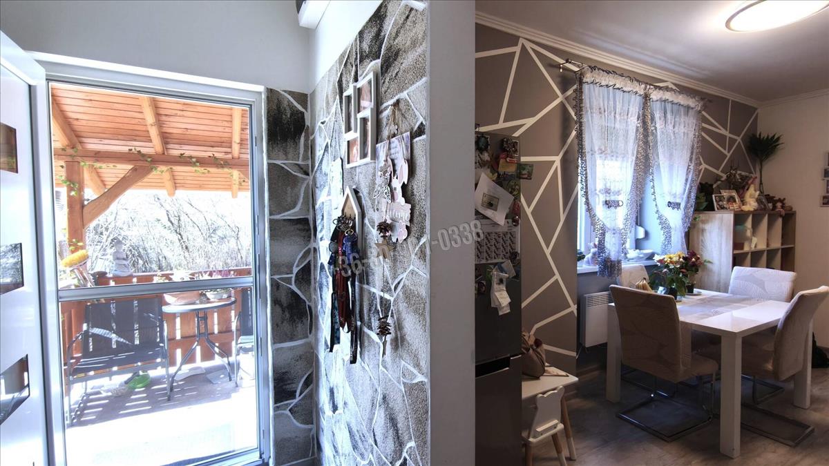 A lakás előtt egyedi kis előtetős teraszt építettek. Közelben található pár perc sétára az óvoda, iskola, orvosi rendelő, gyógyszertár, kisebb üzletek, bank, és a buszmegálló, és több kisebb munkahely is.