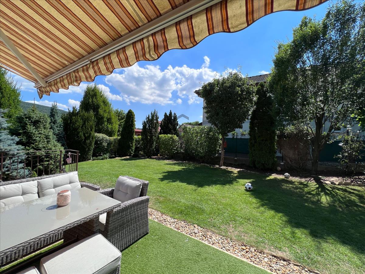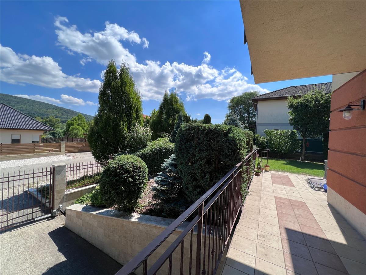 - panoráma a nappaliból és a kertből a Pilisi hegyvonulatra