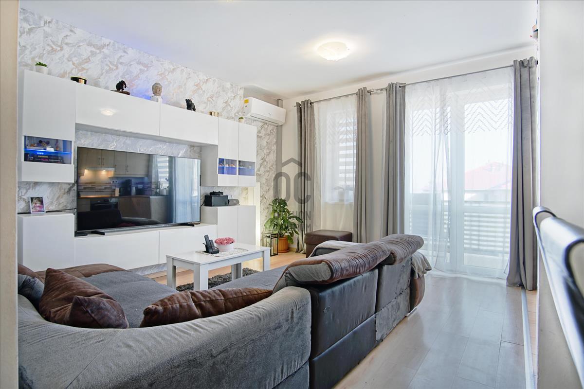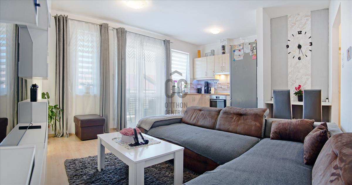 • Első emeleti, erkélyes, amerikai konyhás nappali + 2 külön nyíló szobával