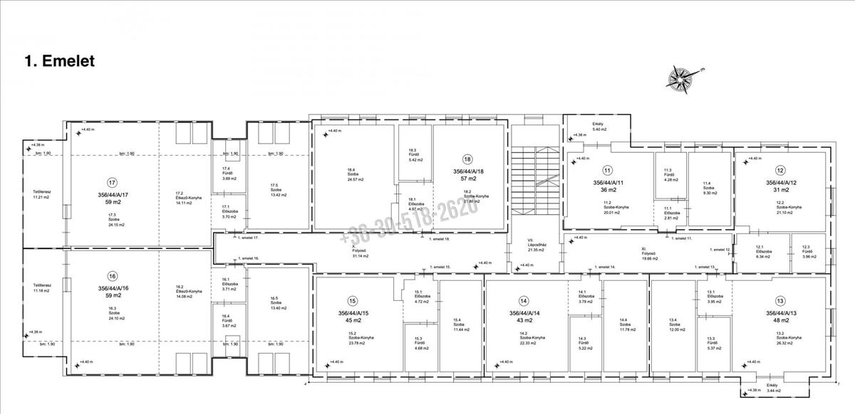 15. Lakás - 45 m2 - 49. 500. 000 Ft. + Autóbeálló 1. 500. 000 Ft. + 2. 57 m2-es tároló 899. 500 Ft.