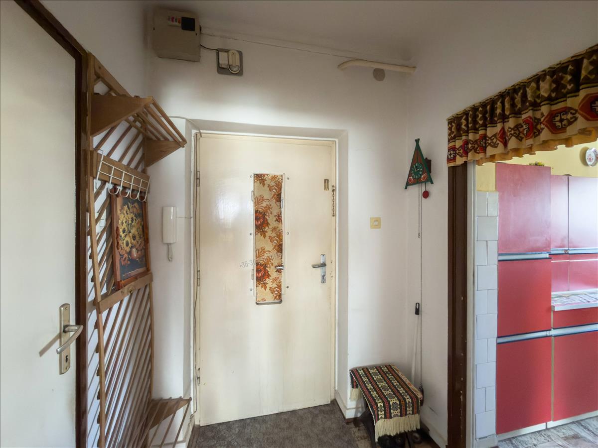 Az ingatlan egy téglaépítésű társasház magasföldszintjén helyezkedik el, belső hasznos alapterülete 55 négyzetméter. Elrendezését tekintve található benne két darab tágas szoba, az egyik szoba rendelkezik egy hangulatos erkéllyel, egy kényelmes konyha spájzzal, egy jól kihasznált előszoba és egy közlekedő, valamint egy fürdőszoba. Fűtése gázkonvektorokkal megoldott, a melegvíz-ellátásáról gáz vízmelegítő gondoskodik. a lakás részben fa, részben műanyag nyílászárókkal rendelkezik, állapota felújítandó.