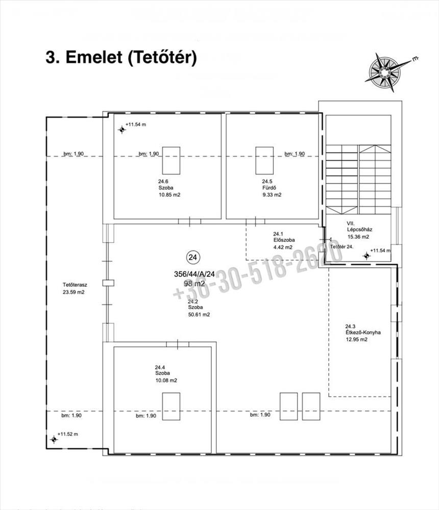 24. Lakás - 98 m2 (bruttó 107. 7 m2) + 23. 59 m2 terasz - 120. 774. 000 Ft. + Autóbeálló 1. 500. 000 Ft. + 4. 51 m2-es tároló 1. 578. 500 Ft.