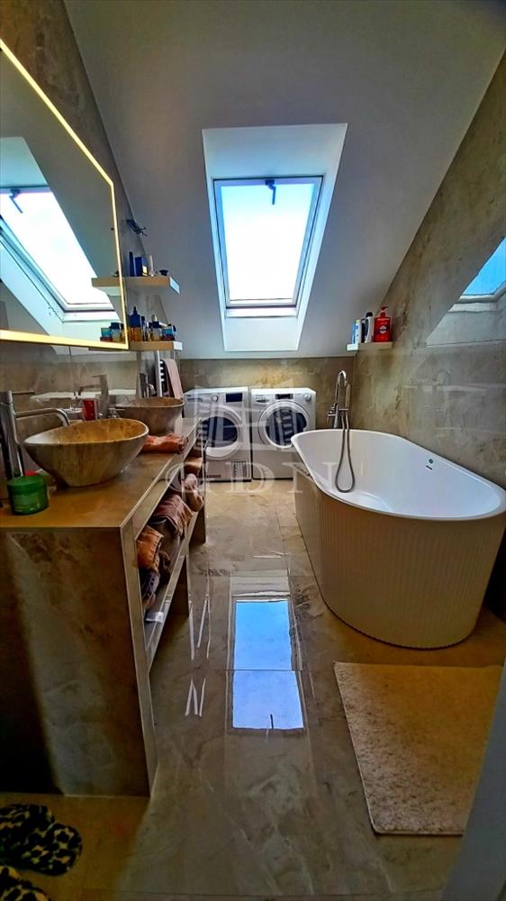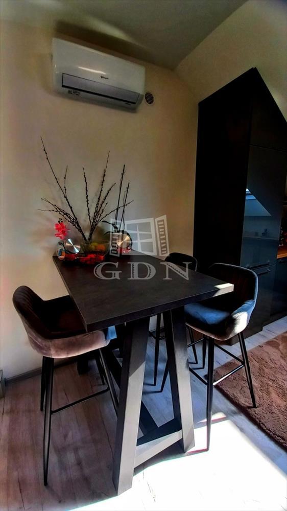 Továbbá a konyha-étkező, és az élhető méretű hálószoba mellett egy fürdőkádas fürdőszoba. a gázfűtés mellett mindkét szobában hűtő-fűtő klíma szolgálja a nagyobb komfortérzetet.