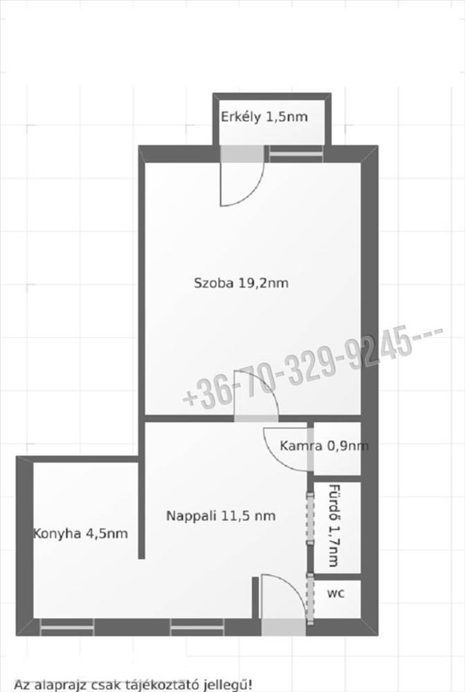 Helyiségei: 1 szoba, nappali, konyha, fürdőszoba, külön nyíló w. C, kamra.