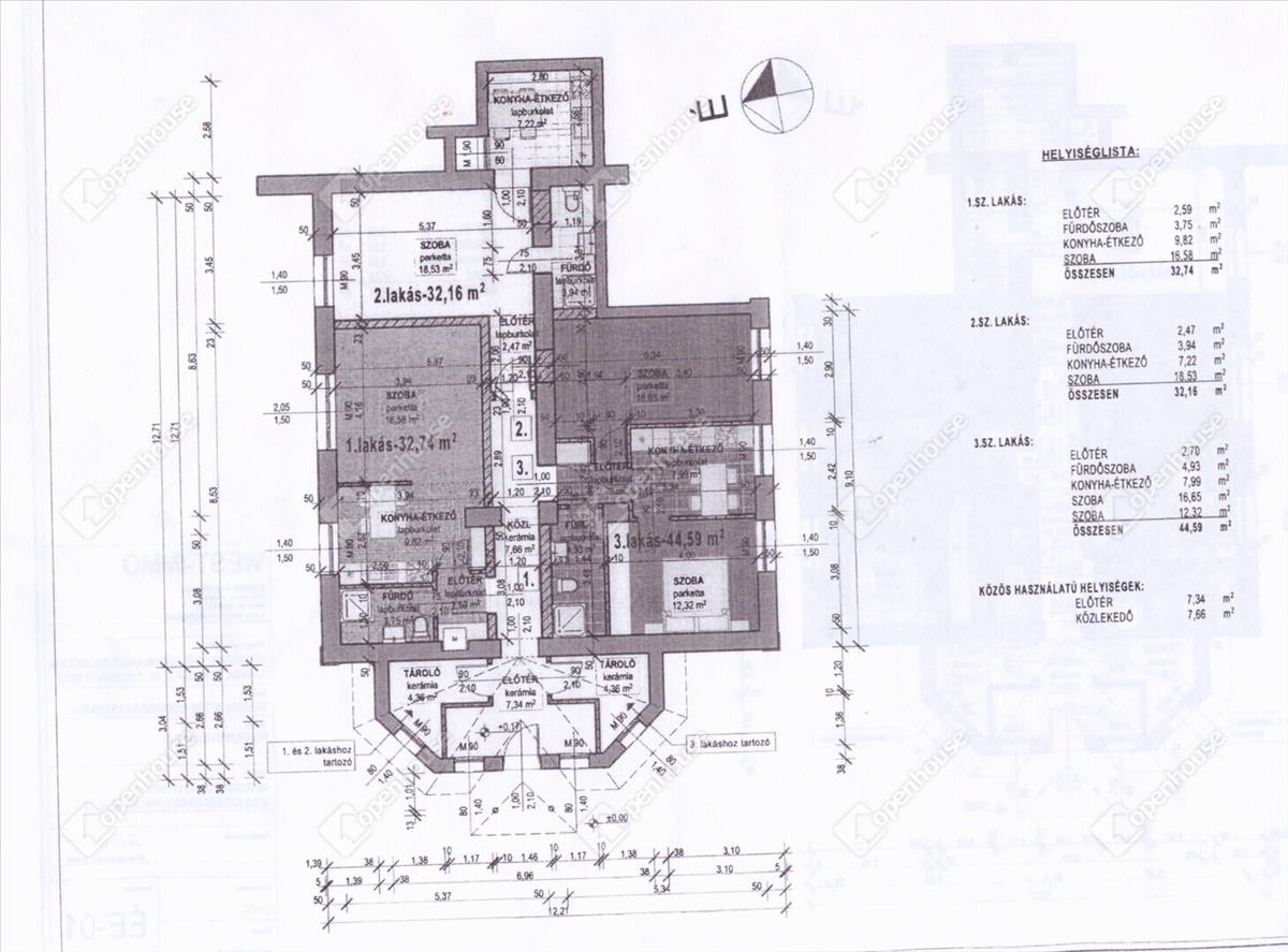 - 3 lakás részei : előtér 2. 7 m2, fürdőszoba, 4. 93 m2, konyha-étkező 7. 99 m2, szoba 16. 65 m2, szoba 12. 32 m2 + 4. 36 m2 tároló