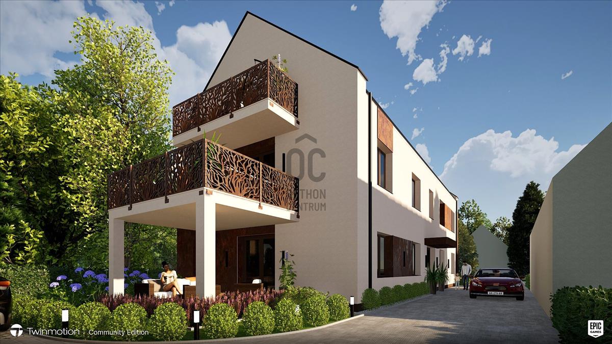 A családi házas övezetben elterülő 648 nm -es telken, háromszintes épületben 6 lakás kerül kialakításra, erkéllyel vagy terasszal, térkövezett kocsibeállókkal.