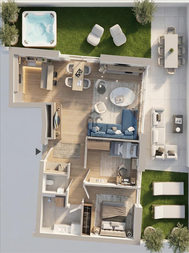 A liftes, modern épületek földszintjén és az első emeleten 4-4 db 48 m2-es, összkomfortos, fedett teraszos lakást, míg a második emeleten 2 db 68 m2-es penthouse-t kínálunk. a földszinti ingatlanokhoz élősövénnyel elválasztott privát udvar, a legfelső szinten pedig mindkét lakáshoz 68 m2-es, napvitorlával árnyékolt, vagy igény esetén végleges fedéssel ellátott tetőterasz, illetve jakuzzi tartozik. a leendő tulajdonosok egy teljesen gépesített, kompakt luxusotthont kapnak külön hálószobával, hasznos terekkel és fedett terasszal.