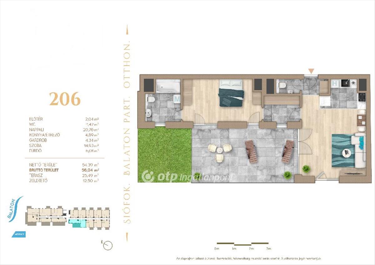 Siófok Ezüstparton 2. emeleti 1 hálószobás teraszos lakás eladóSiófok a déli part központja, 1 órányi autótávolságra Budapesttől. a parti sétányon elhelyezkedő lakás kiváló lokációval rendelkezik a közelben számtalan kikapcsolódási lehetősséggel még is távol a város zajától. 1 Perc séta távolságra az Ezüstpart Yacht kikötő. a 69 lakásos projektben minden lakáshoz erkély tartozik, a fölszinten pedig saját kertek.