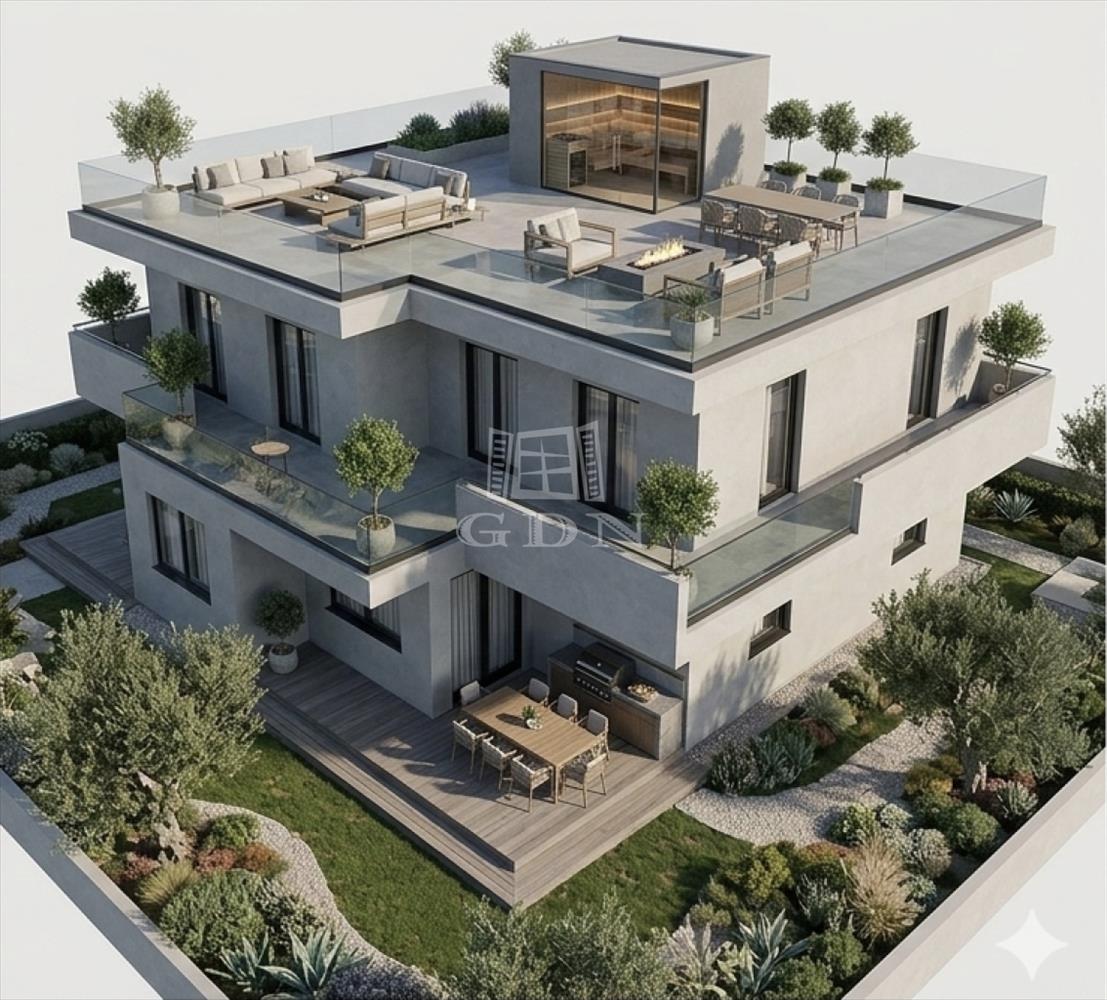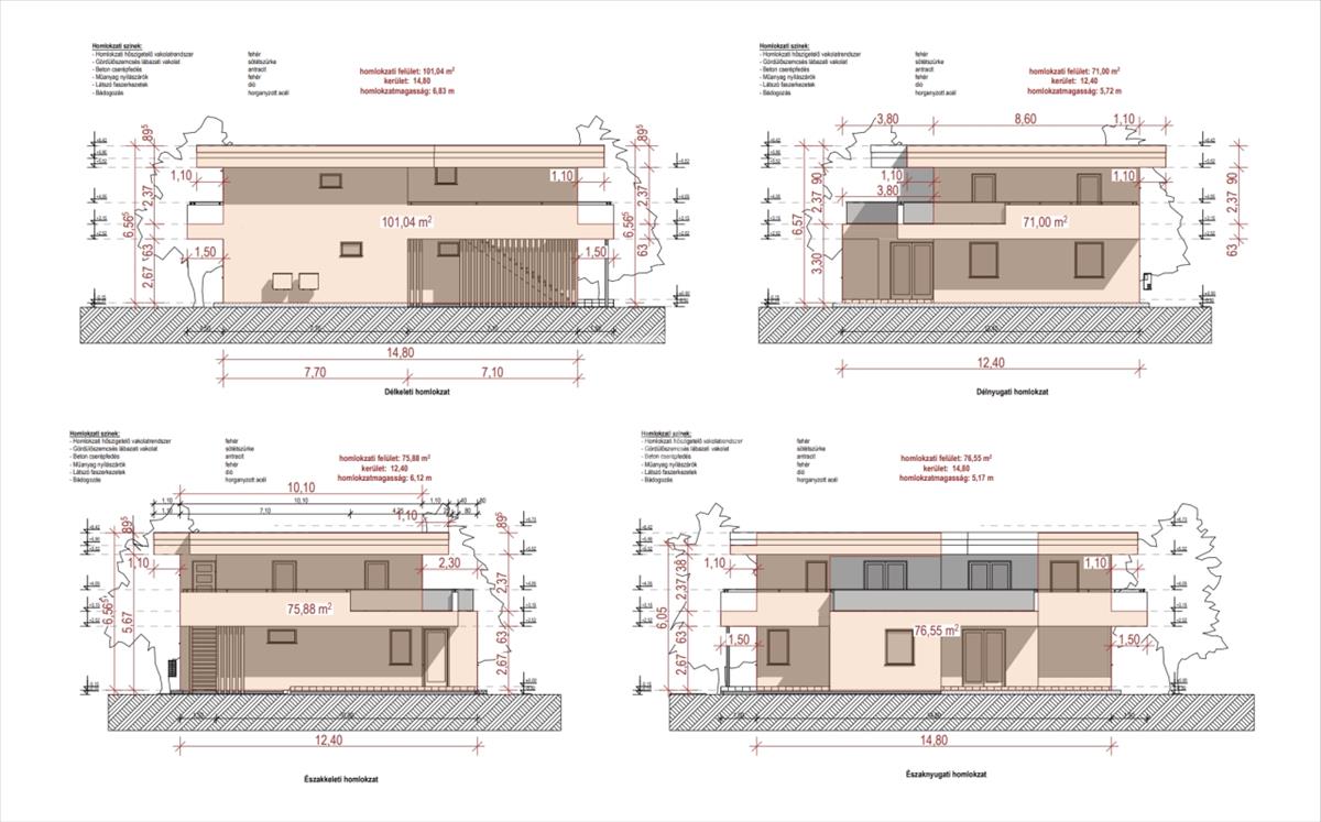 Alapterülete: nettó 115 nm + teraszok 43 nm + saját kertrész 436 nm .