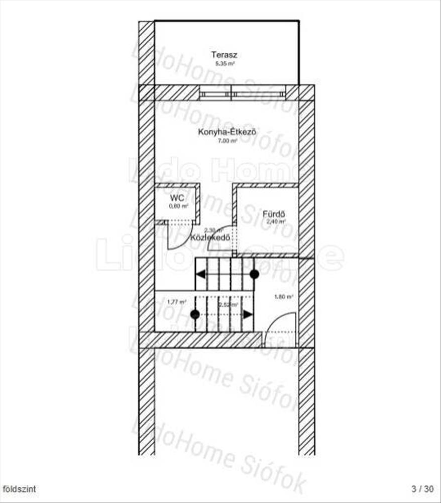 -A földszinten található a frissen kialakított nappali, a fél szinten a konyha, fürdőszoba és külön mellékhelyiség, valamint 6 m2-es erkély, ahonnan a mintegy 20 m2-es, saját használatú udvarra érhetünk.