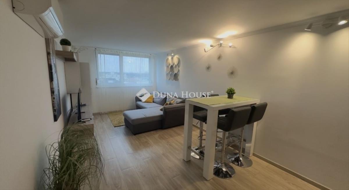A lakás 2020-ban készült ráépítés során nyerte el jelenlegi formáját, modern kialakítással és átgondolt elrendezéssel. Az amerikai konyhás nappali és a külön hálószoba kényelmes életteret biztosít, a fürdőszoba és a wc külön helyiségben található, ami tovább növeli a lakás praktikusságát.