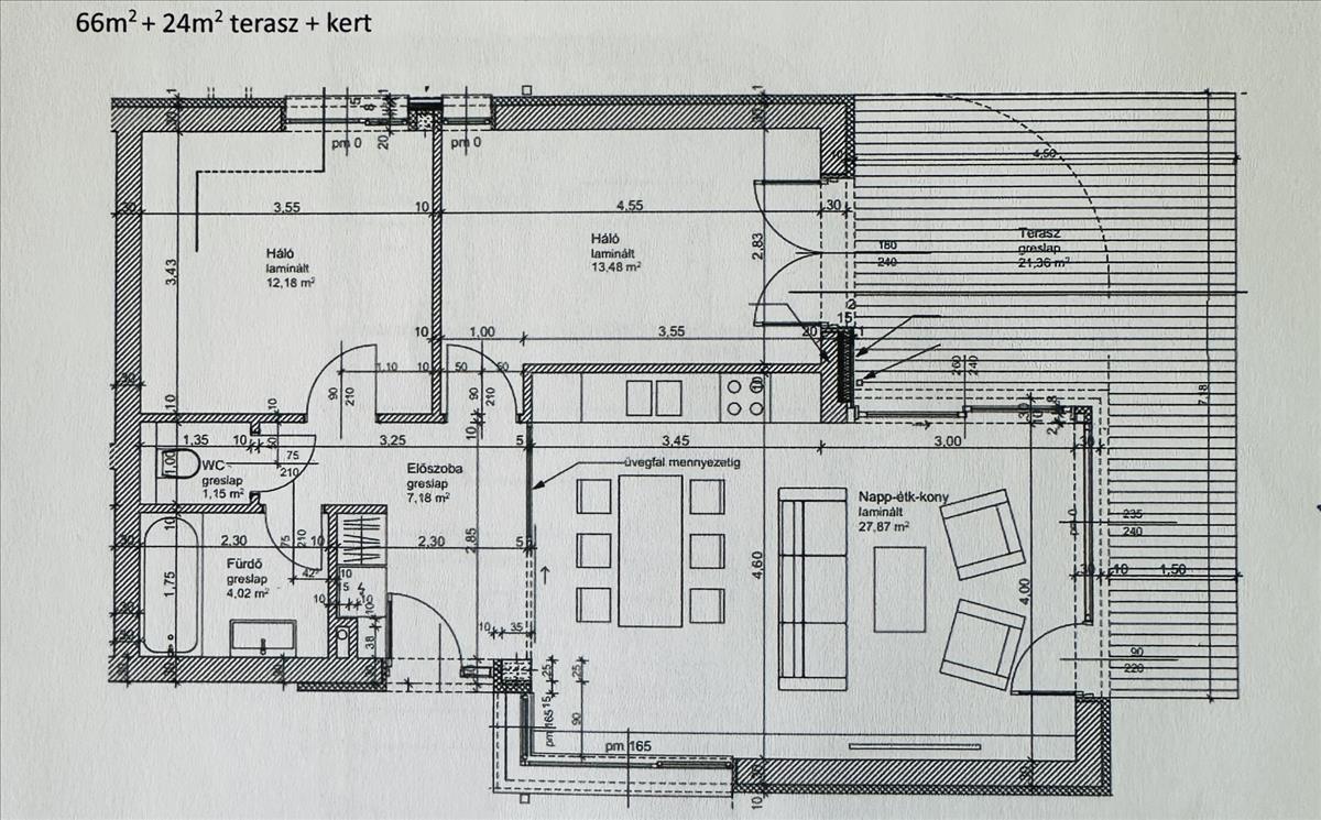Földszinti lakás – 66 m² + 24 m² terasz + saját kert+kocsibeálló