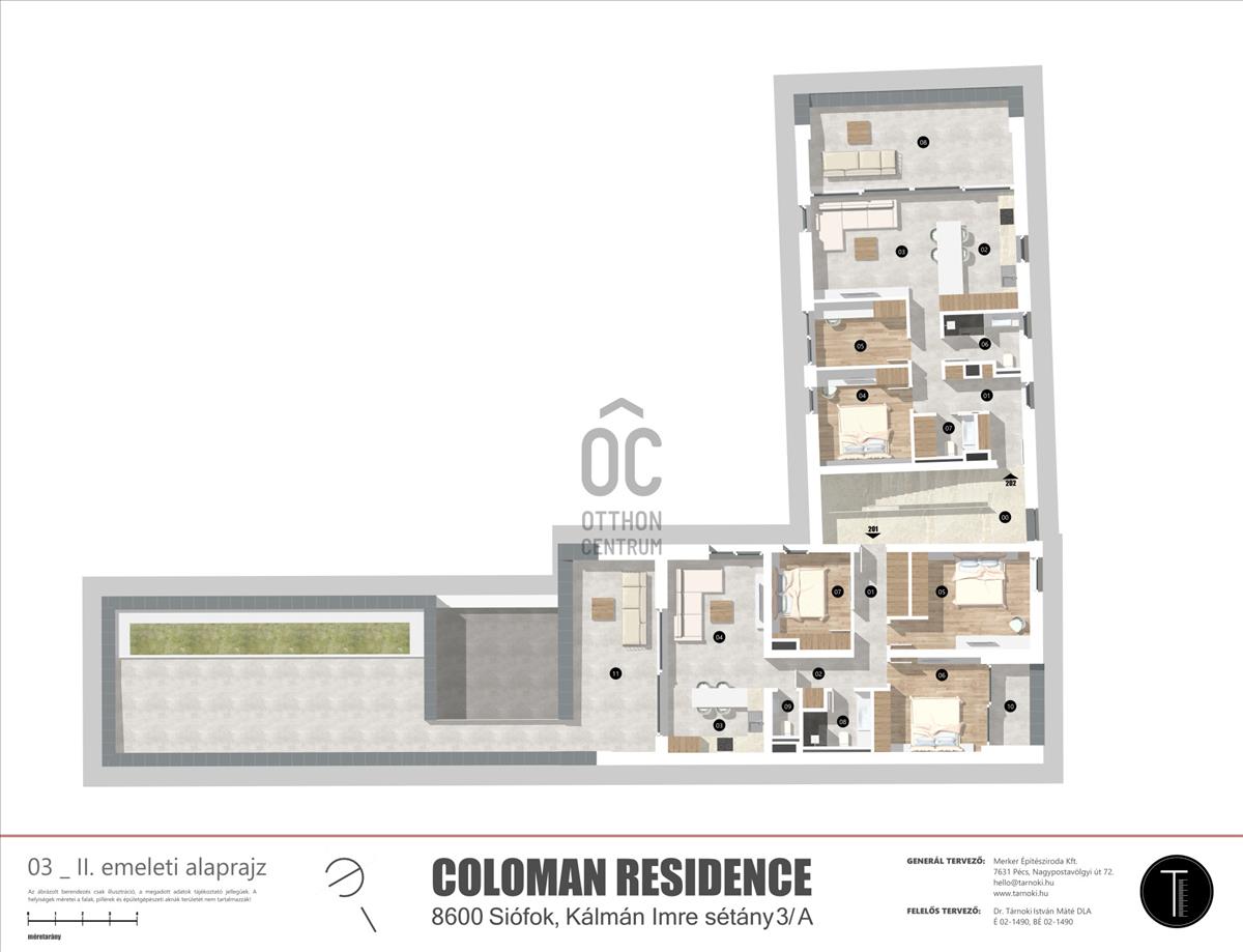 A beruházók nagy hangsúlyt fektettek a minőségi anyaghasználatra mind a ház külső megjelenésében, mind az egyes ingatlanok belső megjelenésében. Az egész házat a minőség, a harmónia jellemzi. a épület 3 szintes (fsz. + 2 Em. ), Melyben mindenki megtalálja a maga álomotthonát, nyaralóját, vagy vállalkozását. Minden ingatlan albetétesítésre került (külön helyrajzi számon vannak). Az épület utcafrontján kapott helyet egy exkluzív kialakítású impozáns kávéház, vagy egyéb üzleti lehetőséget magában rejtő hatalmas üvegfelületekkel rendelkező 108 nm-es üzlethelyiség. Ugyancsak a földszinten található egy több, mint 40 nm-es iroda és egy 54 nm-es üzlethelyiség, valamint egy 61 nm-es lakás. Az első emeleten négy darab különböző méretű és kialakítású lakás, a második emeleten két penthouse lakás.