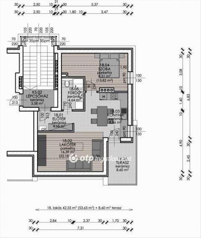 69, 4 nm 3 szobás, 10, 84 nm terasz. (Terasz fele bele lett számolva az alap nettó nm-be. )