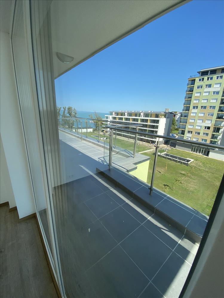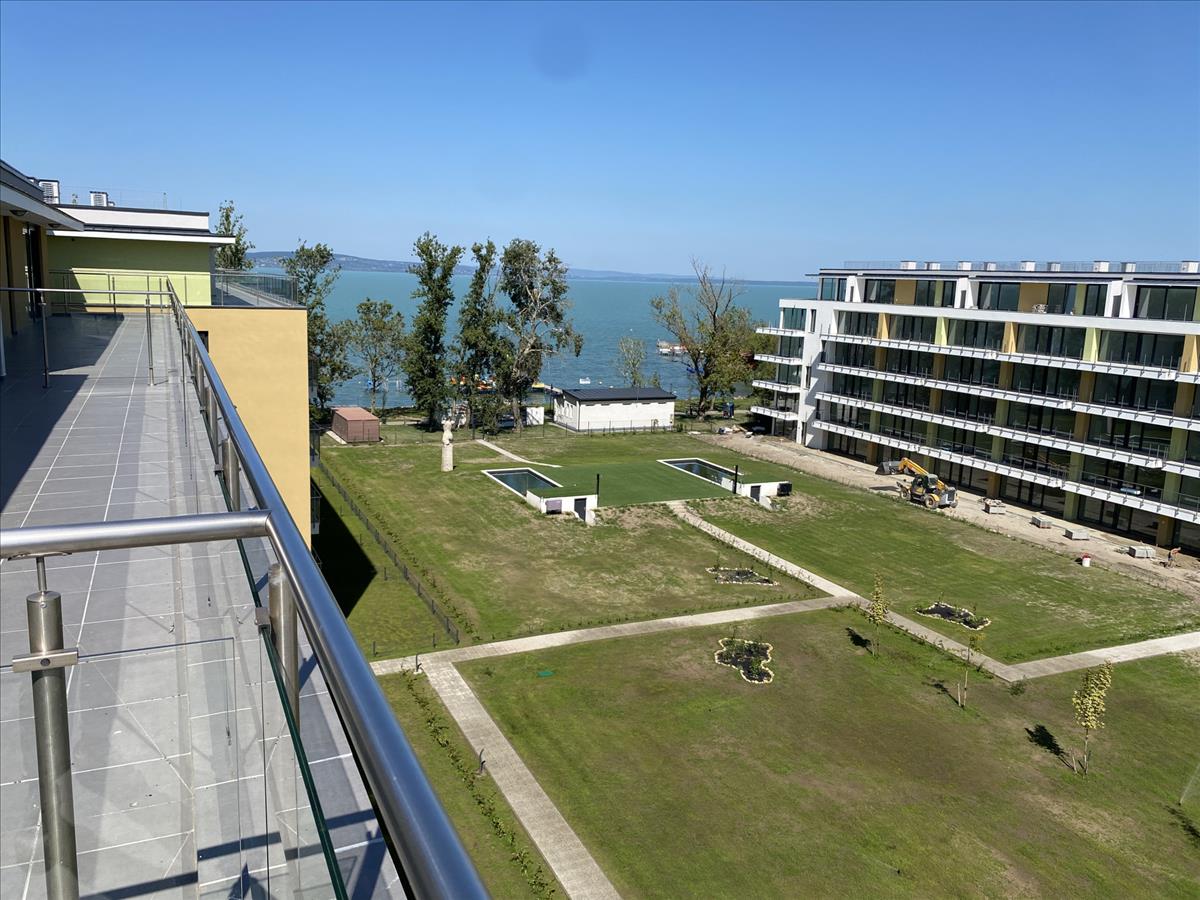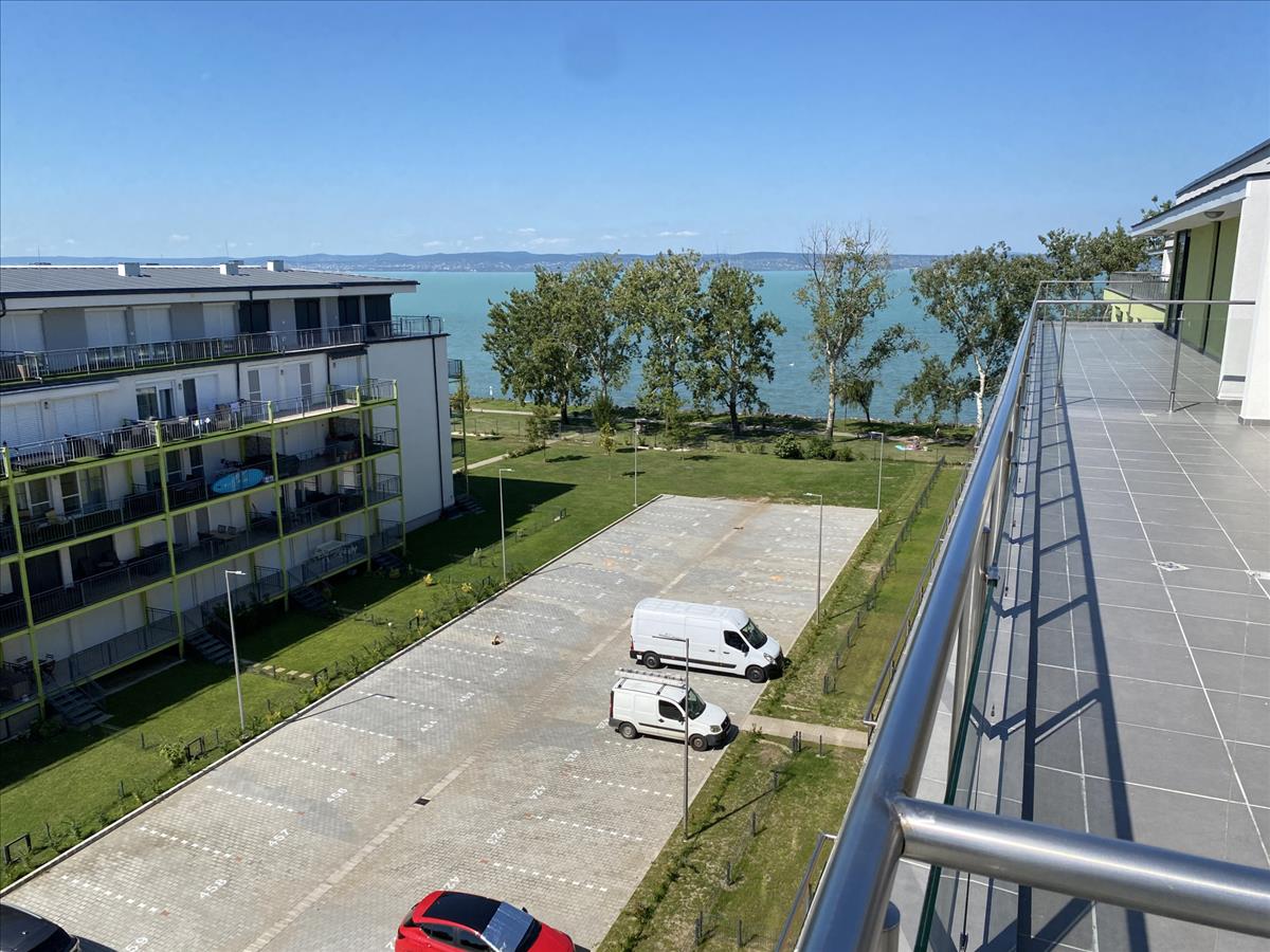 Az ötemeletes apartmanház közvetlenül a Balaton partra (szabadstrand) épült,