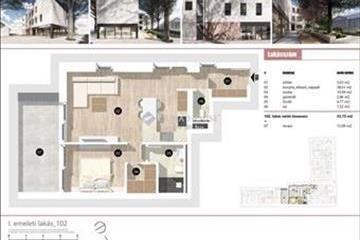 1. /4. 39 m2: előtér-konyha+nappali+étkező-hálószoba-fürdő WC-vel.
