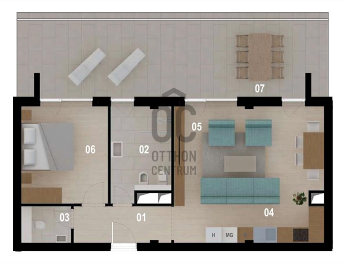 szoba, nappali, konyha, fürdőszoba +wc, wc, , előtér, közlekedő, terasz