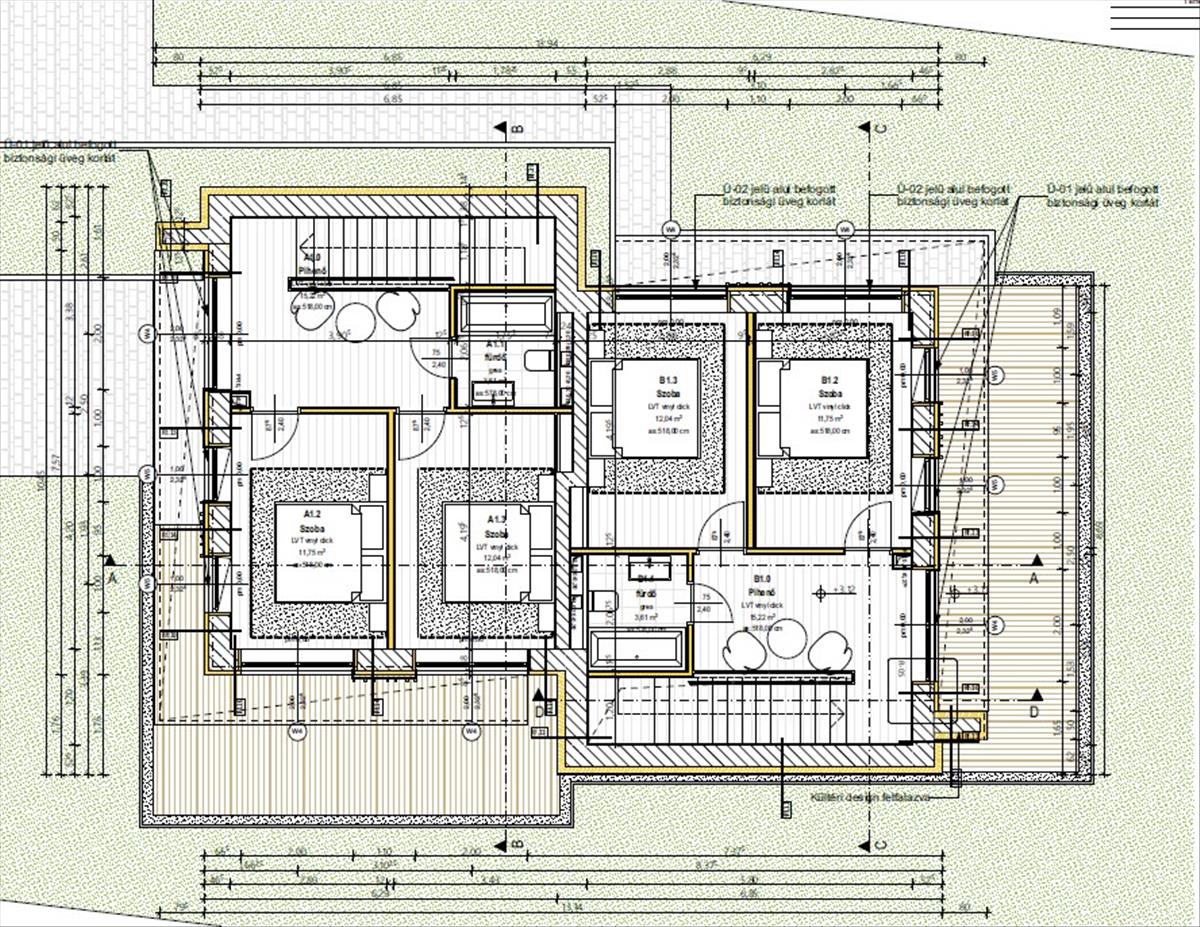-hőszivattyús hűtés-fűtés rendszer, mennyezethűtés, padlófűtés, hőszigetelő nyílászárók, napelem (igény esetén kiépíthető).