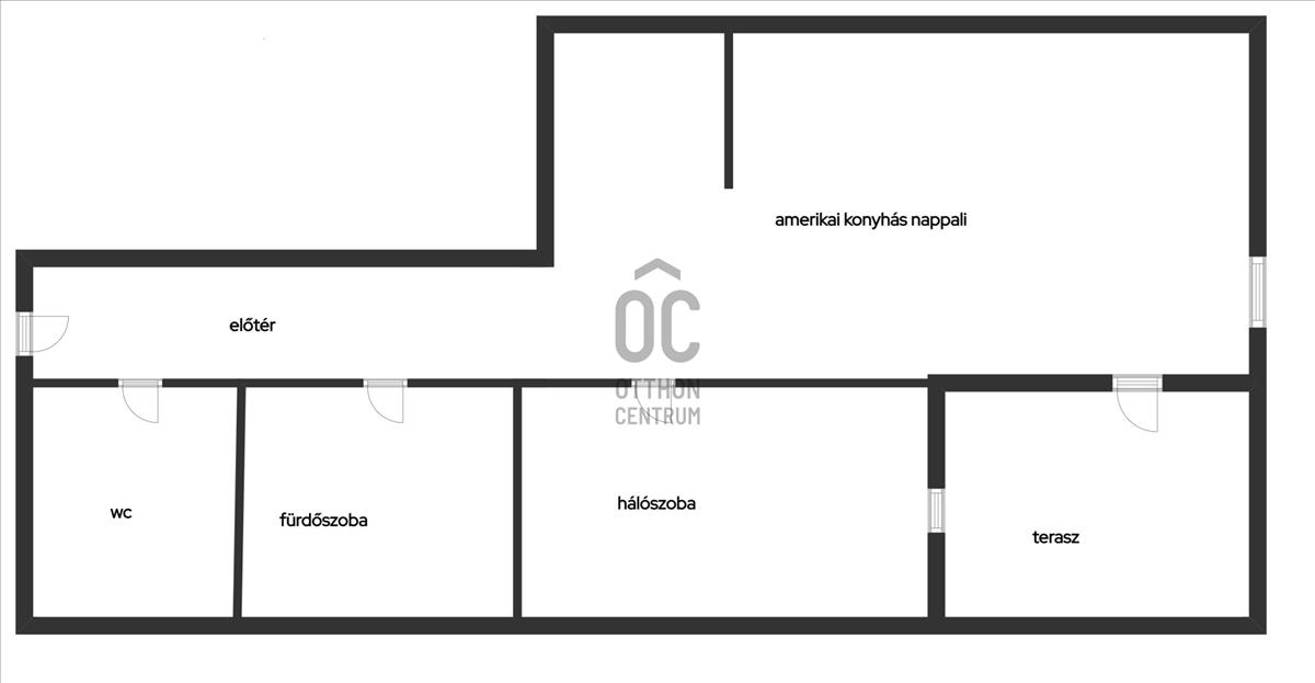 -helyiségei:előtér, gépesített konyha-nappali, hálószoba, fürdőszoba, wc, erkély