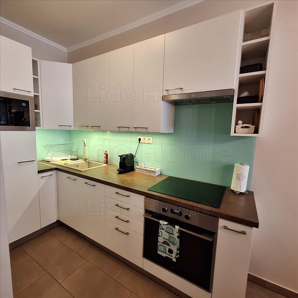 Teljesen berendezett, a beépített konyhabútor, sütő, főzőlap, hűtő, mikró, mosogatógép, továbbá a bútorok az ár részét képezik.
