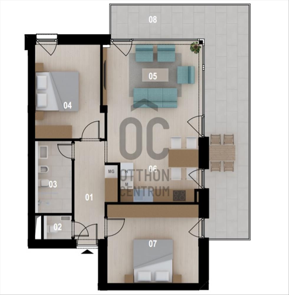 Új építésű társasház 3. emeletén kínálom megvételre, ezt a csodás nyugati balatonra panorámás front lakást.Elosztása: