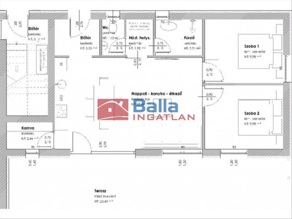 Nettó: 58 m2 /Terasz: 20. 4 m2 / Kert: 135 m2