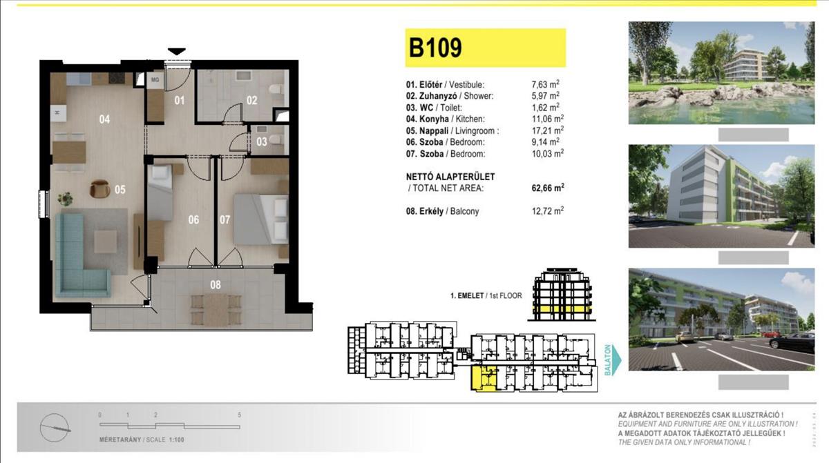 A hirdetésben szereplő lakás paraméterei: