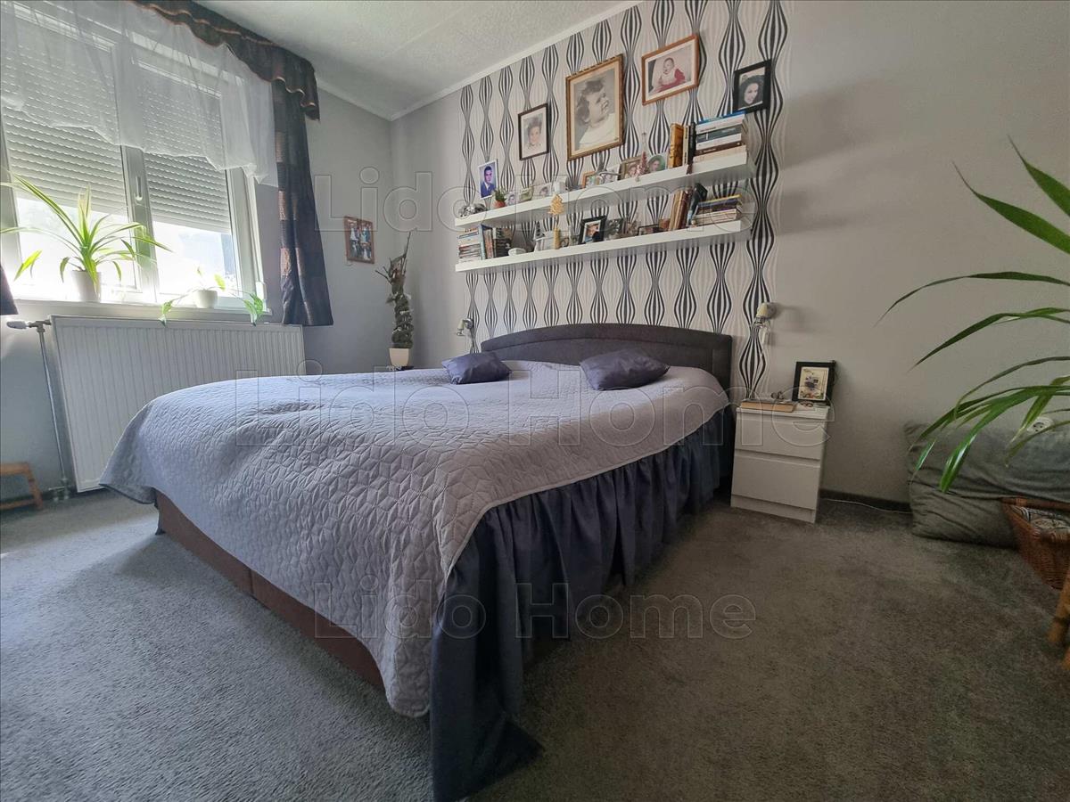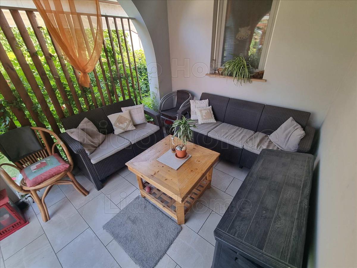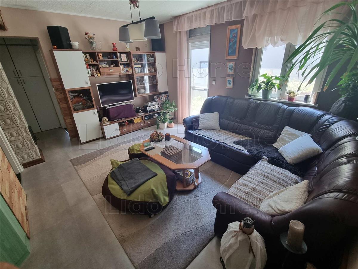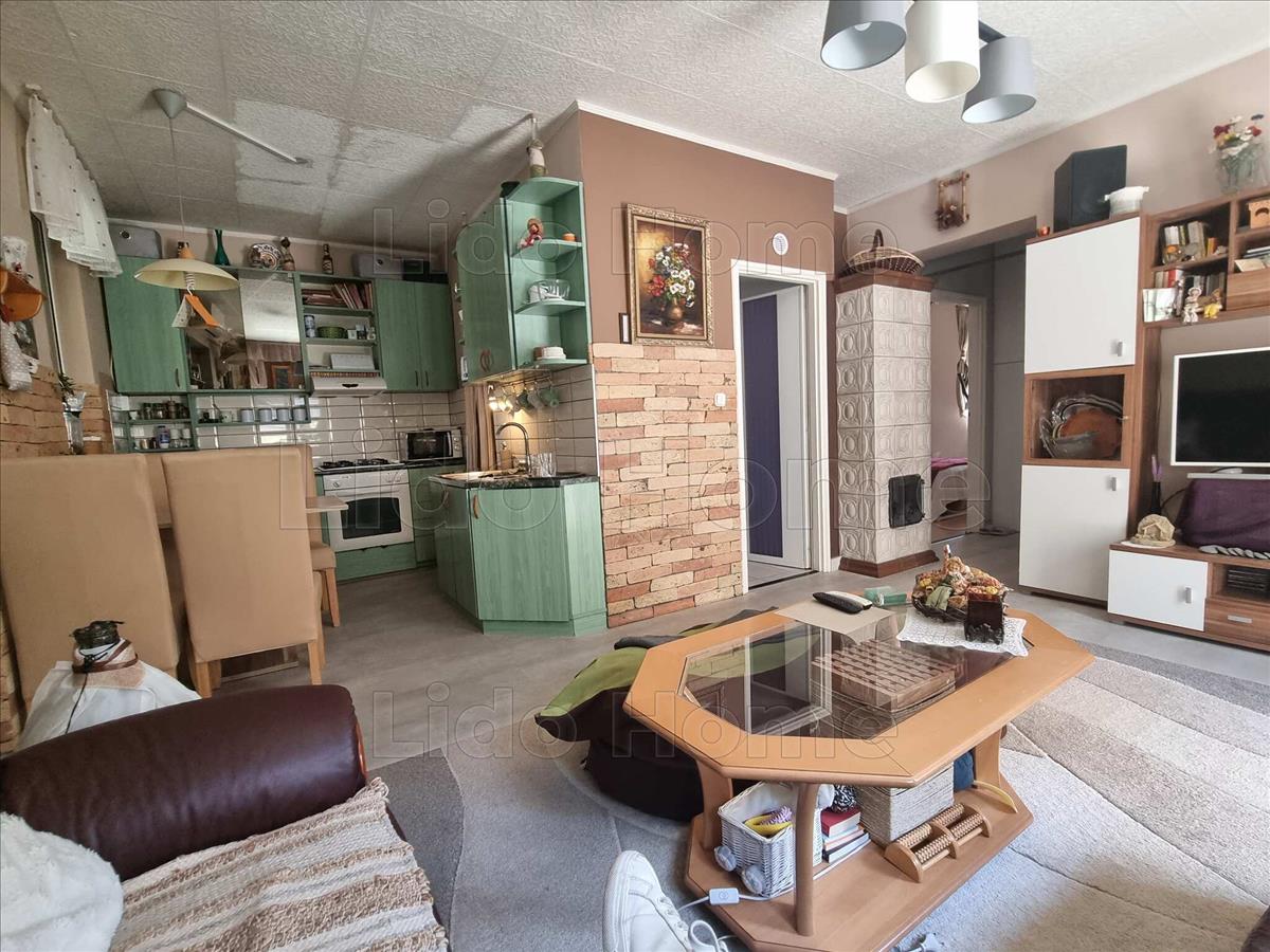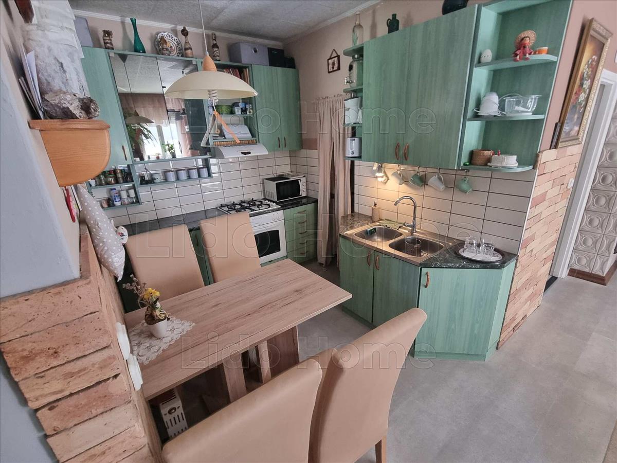 -az alsó szinten külön bejárattal rendelkezik, 2+1 hálószobával, 1 amerikai konyhás nappalival, kamrával, előszobával, felújított fürdőszobával, fedett terasszal, kis kerttel és a kertben tárolóval