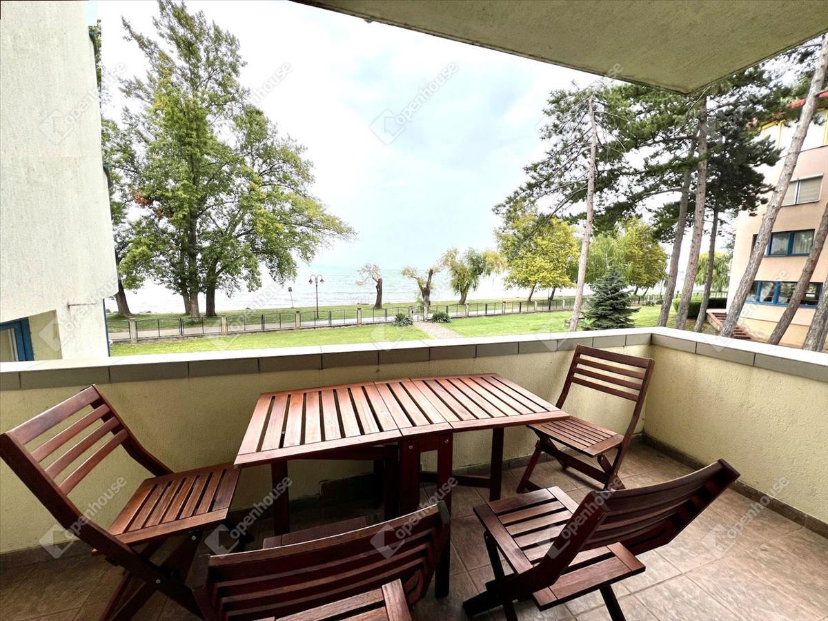 A tégla építésű parti frontpanorámás lakás a társasház 1. emeletén helyezkedik el, melyből a Balaton látványát élvezhetjük.