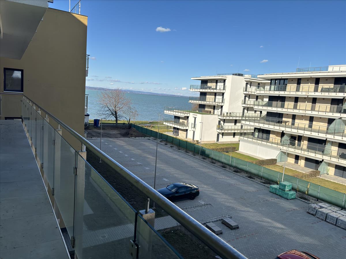 Az ötemeletes apartmanház a Balatonra merőlegesen helyezkedik el, így biztosítva a lakásokból az