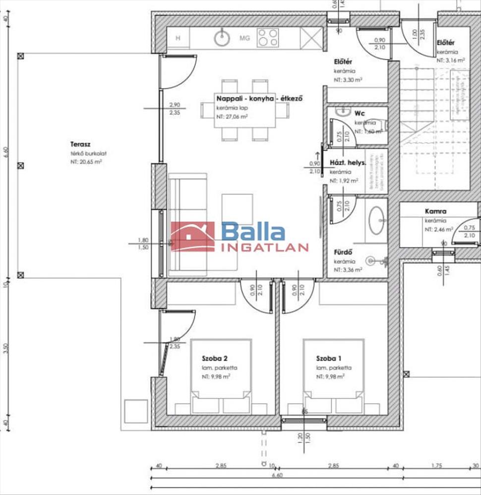 Nettó: 60 m2 /Erkély: 20 m2 / Kert: 100 m2