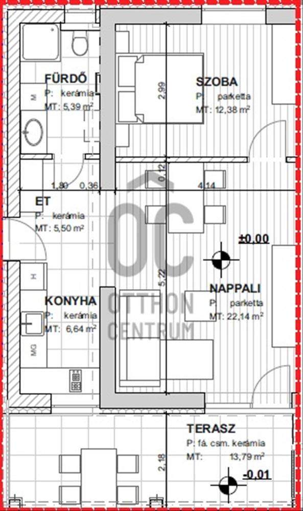A lakáshoz egy saját 57 nm-es kert tartozik.
