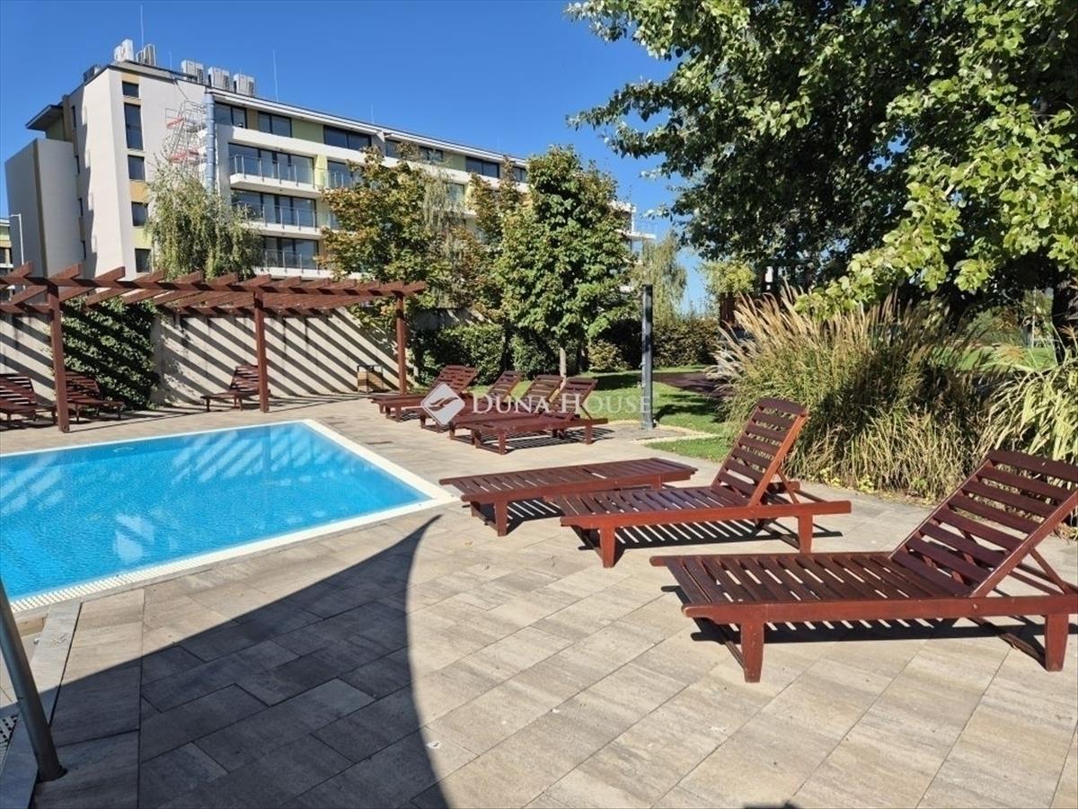 Különlegesen szép, nagy, gondozott kertjében, a társasháznak fűtött kültéri medencéje, napozóterasza is van, biztosítva a pihenést, kikapcsolódást egy igen pazar környezetben.
