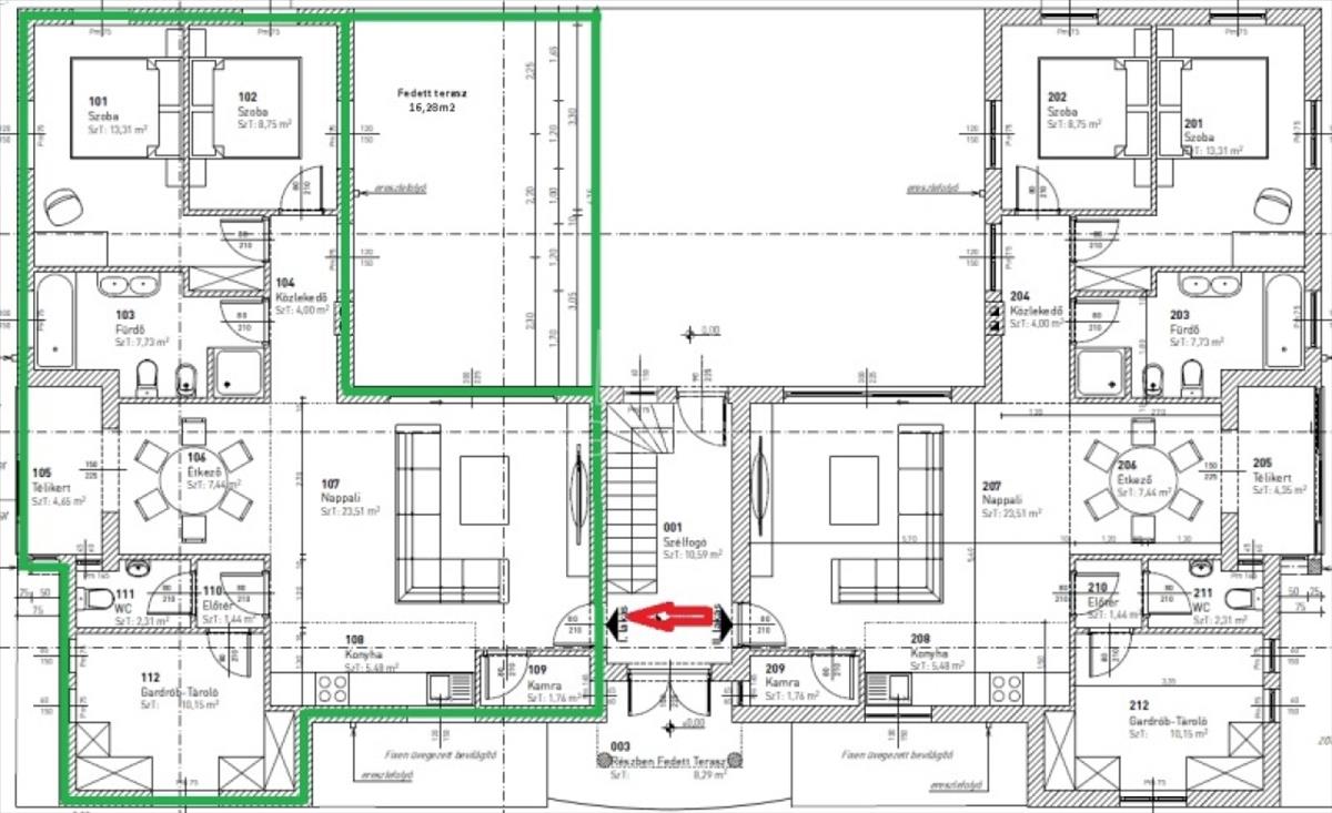 A 6 lakásos társasház rendezett, közös használatú udvarán található medence, és napozó terasz. a lakásokhoz 2 saját autóbeálló tartozik, melyek megvásárlása kötelező, ára 2x4. 000. 000, - Ft.