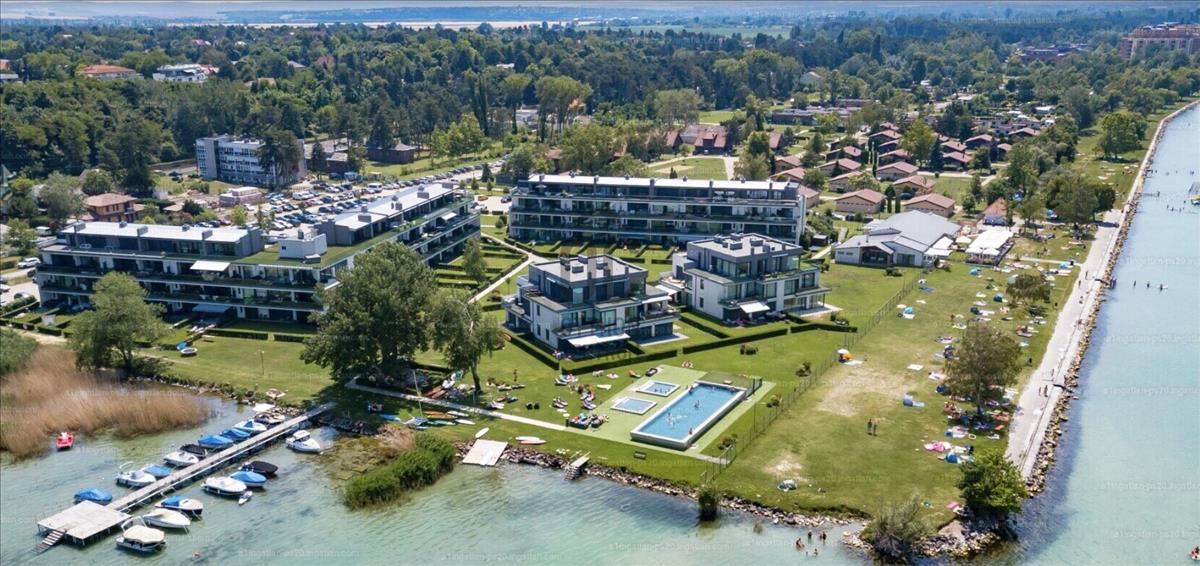 A lakás kiváló minőségű társasházban található, közvetlenül a Balaton partján, festői környezetben.