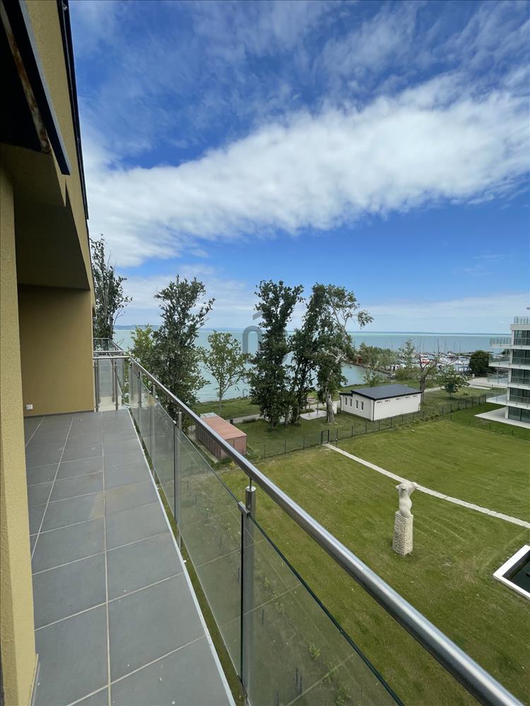 Eladó egy modern, azonnal költözhető, vízparti lakás Siófok legszebb részén, az Ezüstparton – medencés társasházban, 12 m²-es panorámás erkéllyel, felszíni parkolóval, teljes Balaton-élménnyel!