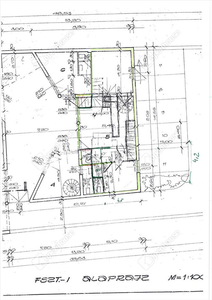 Jelenlegi kialakítás: 5 helyiség, teakonyha, wc, belső kétszintes elosztás
