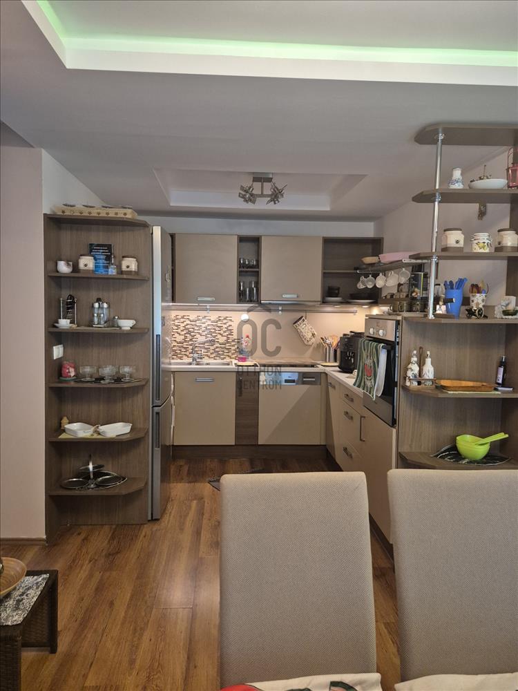 A lakásban található egy világos nappali, amely a modern életvitelhez szükséges funkciókat maximálisan kiszolgálja, valamint egy amerikai konyha, amely beépített konyhabútor és gépesített, tökéletesen alkalmas a családi étkezésekhez és baráti összejövetelekhez.